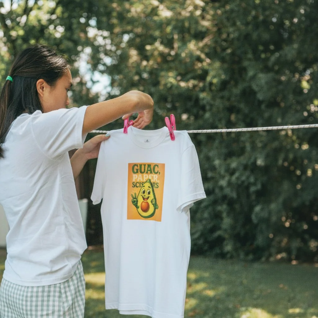 It all starts with the fabric. Our T-shirts are made with 100% organic fibers, certified by the Organic 100 Content Standard, ensuring traceability and purity from seed to final stitch.